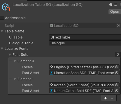 }//ScriptableObject로 Locale-FontAsset 쌍을 맞춰 저장해놓음
