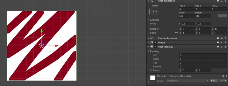 위 기능과 더불어 부분적으로 알파 값까지 변경시켜주는 Rect Mask2D 컴포넌트가 있습니다.