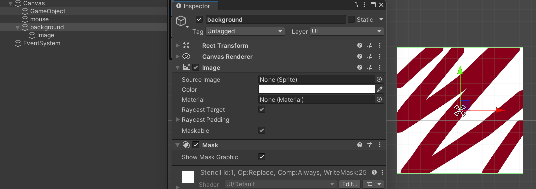 사각형 이미지에 Mask 컴포넌트를 넣고 자식 오브젝트로 적당한 이미지를 넣어봤습니다.