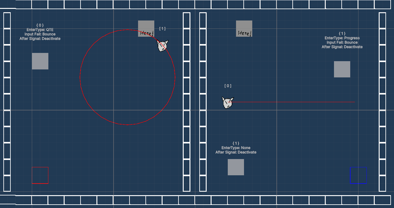 닿기만 하면 발동되는 트리거는 재미가 없으니 이전에 만들어둔 InputQTEService, InputProgress와 연동해 작은 QTE 혹은 프로그레스를 실행해야 작동하게 해봤습니다.