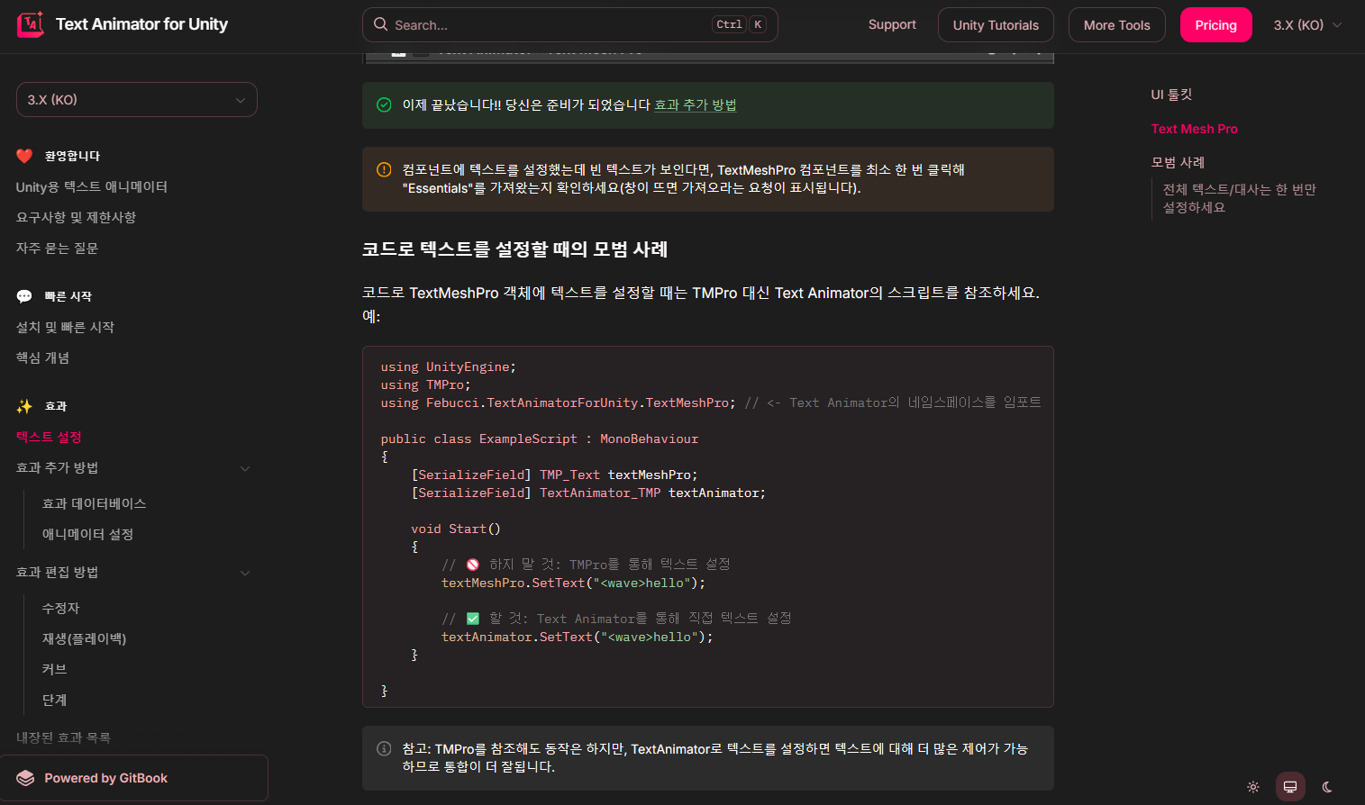 rich text의 tag 기반 로직이라 사용이 어렵지 않았고, 정말정말정말 놀랍게도 공식 문서가 한글화가 되어 있었습니다.